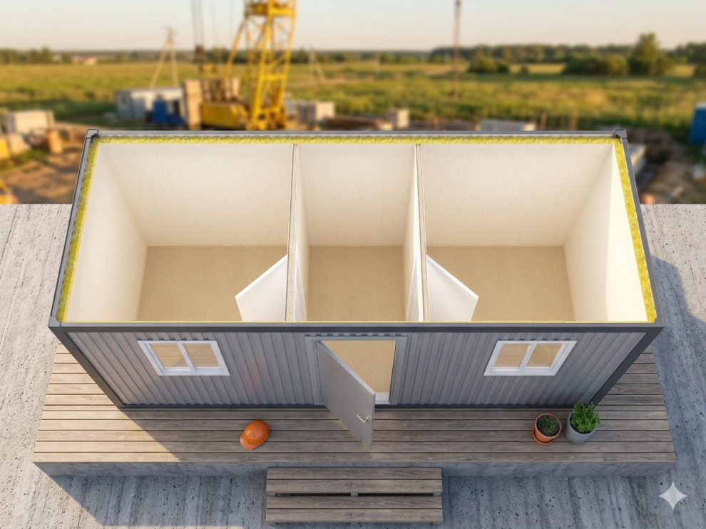 Блок-контейнер № 3 — это профессиональное решение для организации рабочего пространства на строительных площадках Санкт-Петербурга и Ленинградской области. Модуль типа «распашонка» с общим тамбуром позволяет разделить пространство на два изолированных помещения: например, кабинет прораба + склад инструментов или два офисных помещения для разных специалистов.