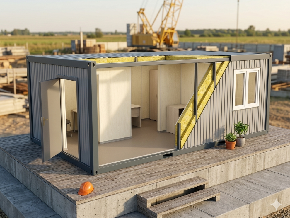Блок-контейнер №14 — это модуль повышенной комфортности из сэндвич-панелей для круглогодичного проживания персонала или организации офисного пространства на объектах по всей России. Уникальная планировка с жилым помещением, полноценным санузлом и просторным тамбуром (используется как кладовая или техническое помещение) делает этот контейнер идеальным решением для вахтовых поселков, строительных площадок и удаленных объектов в Санкт-Петербурге, Москве и регионах.
